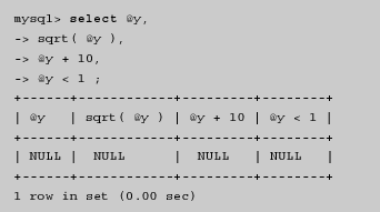 mysql> do @ingreso := now();Las variables no requieren declaración y, por omisión, contienen el valor NULL que significa “ausencia de valor”, observad en la siguiente consulta los resultados de utilizar valores nulos: