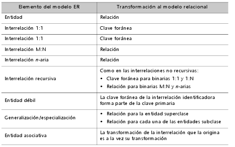 La tabla que mostramos a continuación resume los aspectos más básicos de las transformaciones que hemos descrito en las secciones anteriores, con el objetivo de presentar una visión rápida de los mismos: