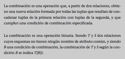 A continuación definimos los atributos y la extensión de la relación resultante de una combinación.