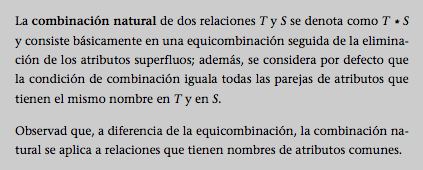 En ocasiones, antes de la combinación natural es necesario aplicar la operación redenominar para hacer coincidir los nombres de los atributos que nos interesa igualar.