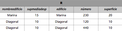 EDIFICIOS(nombreeedficio,supmediadesp) := EDIFICIOS_EMP(edificio, supmediadesp),