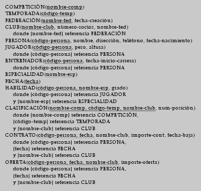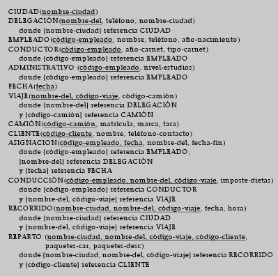 6. El resultado de la transformación a relacional del modelo ER propuesto como solución del ejercicio 3 consta de las siguientes relaciones: