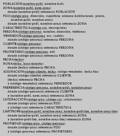 4. El resultado de la transformación a relacional del modelo ER propuesto como solución del ejercicio 1 consta de las siguientes relaciones: