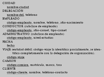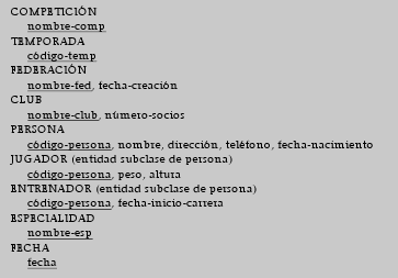 Los atributos de las entidades que figuran en el diagrama son los siguientes (las claves primarias se han subrayado):