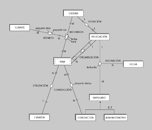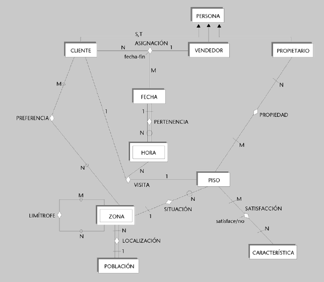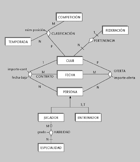 2. La siguiente figura muestra un diagrama ER que satisface los requisitos que se han descrito:
