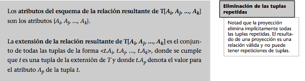 A continuación definiremos los atributos y la extensión de la relación resultante de una proyección.