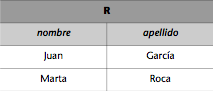 Si queremos obtener una relación R con el nombre y el apellido de todos los empleados de administración de la base de datos del ejemplo, haremos la siguiente proyección:
