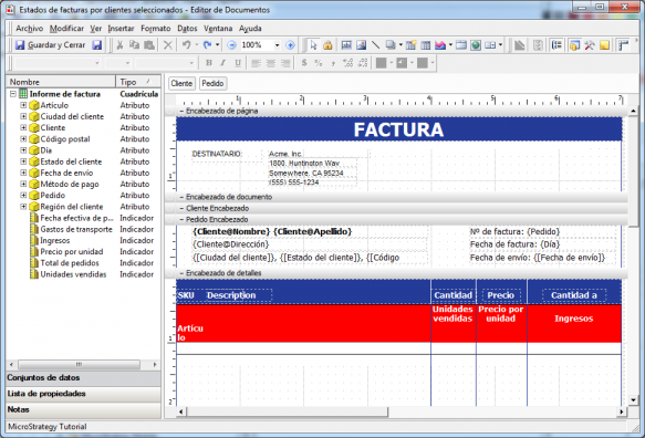 Podemos ver en el ejemplo que con un unico conjunto de datos (informe vinculado al documento), hemos podido mostrar la información en varios sitios y con diferentes estructuras y niveles de detalle. Por tanto, siempre tendremos que tener definidos de antemano el conjunto de informes consistentes que nos permitan construir los documentos con la información que queremos.