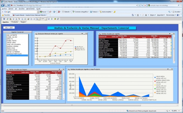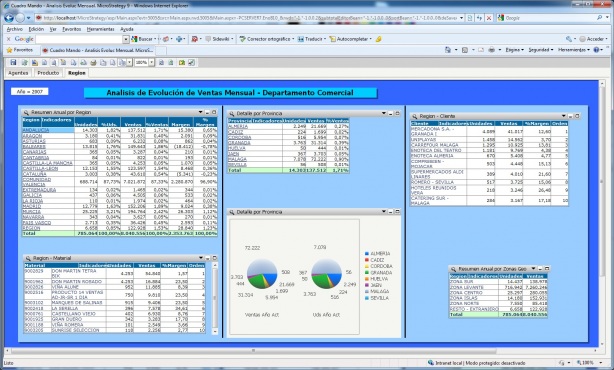 Durante la elaboración de los ejemplos, partiendo de nuestro proyecto Enobi (que recuerdo es una empresa ficitica y por tanto, inexistente), he constatado lo importante que es tener bien claro que se quiere analizar, definir bien el ambito de este análisis y los indicadores clave que queremos estudiar. Los ejemplos descritos son sencillos y no entran en profundidad en los requerimientos de análisis del area de ventas de cualquier empresa, pero intentan que veamos las posibilidades de lo que podemos construir utilizando la herramienta de Microstrategy,combinando los diferentes elementos, dandole dinamismo a los informes y reutilizando todas las funcionalidades de reporting y navegación Olap que ya vimos en entradas anteriores del Blog.