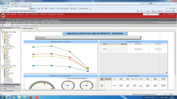 En los ejemplos no hemos incluido navegación dentro de los informes o los gráficos, ni tampoco la llamada a otros informes a través de la vinculación de atributos. Pero la funcionalidad esta disponible y se podría haber sacado partido de ella para profundizar mas en los datos (sobre todo para analizar determinados aspectos que nos llamen la atención, como tendencias, valores negativos o por debajo de lo esperado, etc.).