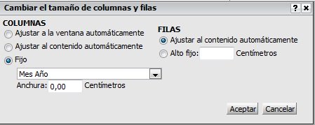- Modo Editable: es similar al de diseño, pero los controles se muestran con información, de forma que nos podemos hacer una idea de como quedara el formato de los resultados. En este modo se pueden realizar todos los ajustes del modo diseño vistos. Los widgets flash no funcionan y no se pueden cambiar los atributos de visualización de este tipo de objeto. Por ejemplo, este modo es ideal para realizar ajustes en los tamaños de filas y columnas, pues estamos viendo los controles con información real (este ajuste también se hace en el modo diseño, pero a ciegas, pues no vemos el resultado con datos).