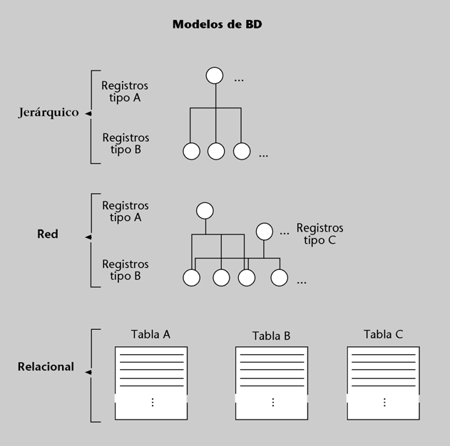 El conjunto de componentes o herramientas conceptuales que un SGBD proporciona para modelar recibe el nombre de modelo de BD. Los cuatro modelos de BD más utilizados en los SI son el modelo rela- cional, el modelo jerárquico, el modelo en red y el modelo relacional con objetos.