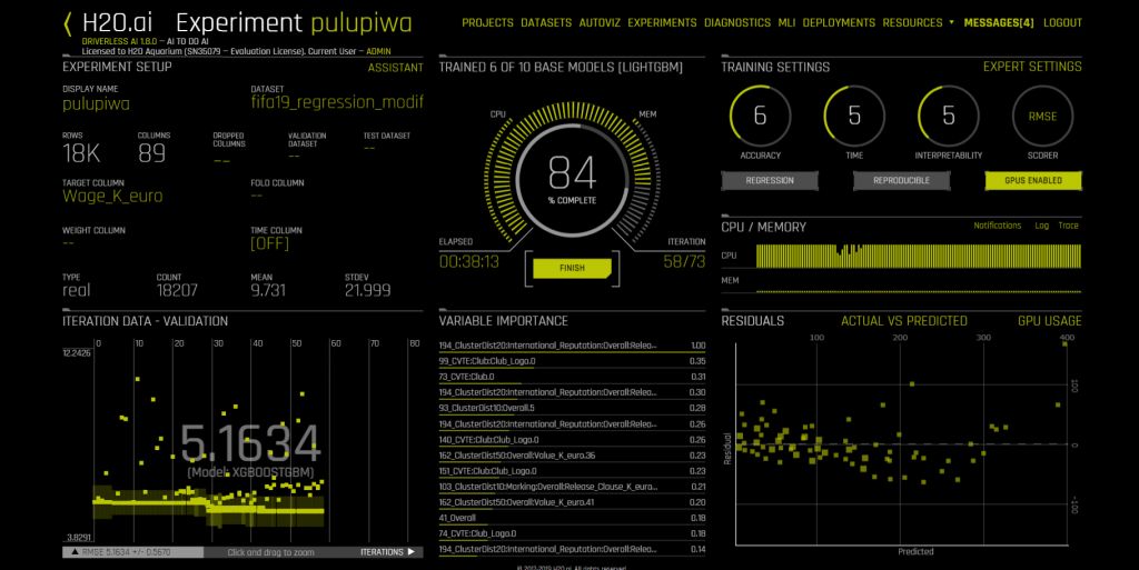 Basada en Apatxe Spark, inclou en la plataforma eines open source d'aprenentatge automàtic d'H₂O, que ofereix als usuaris una forma senzilla d'analitzar dades estructurades. La plataforma també inclou una interfície d'arrossegar i deixar anar fàcil d'usar per a construir models i fer prediccions.