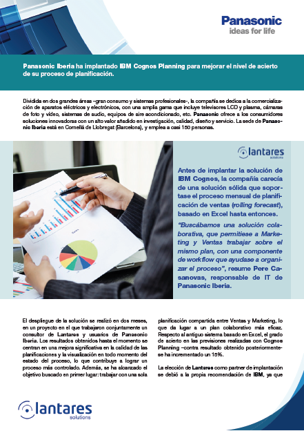 En este Case Study podrás ver cómo Lantares colaboró con Panasonic Iberia para mejorar el nivel de acierto de su proceso de planificación a través de IBM Cognos Planning.