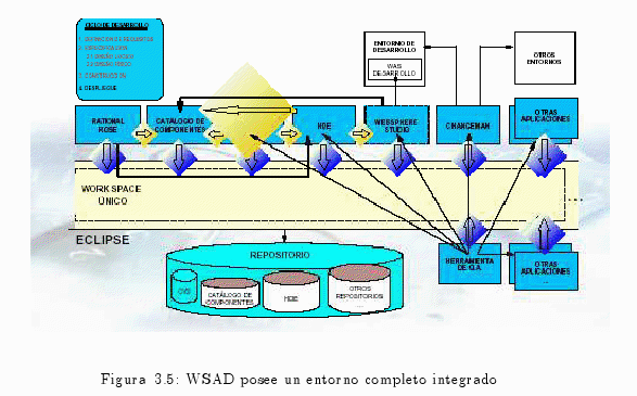 3.4 Ventajas de migrar a WebSphere Studio Application Developer alfonsocutro Fri, 03/12/2010 - 13:26La ventaja fundamental consiste en la integración de todos los entornos de desarrollo Java, Web en una única plataforma de desarrollo.