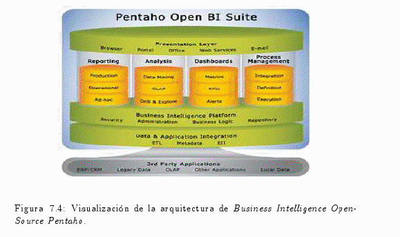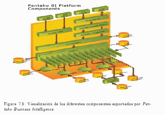 La fig. 7.4 permite visualizar la arquitectura estructurada de las diferentes componentes que forman parte de Pentaho.