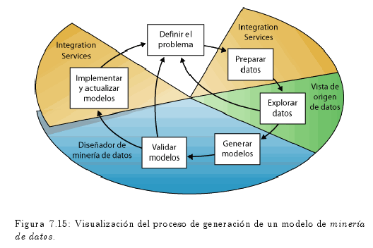 En el diagrama de la fig. 7.15 se describen las relaciones existentes entre cada paso de un proceso de generación de un modelo de minería de datos.