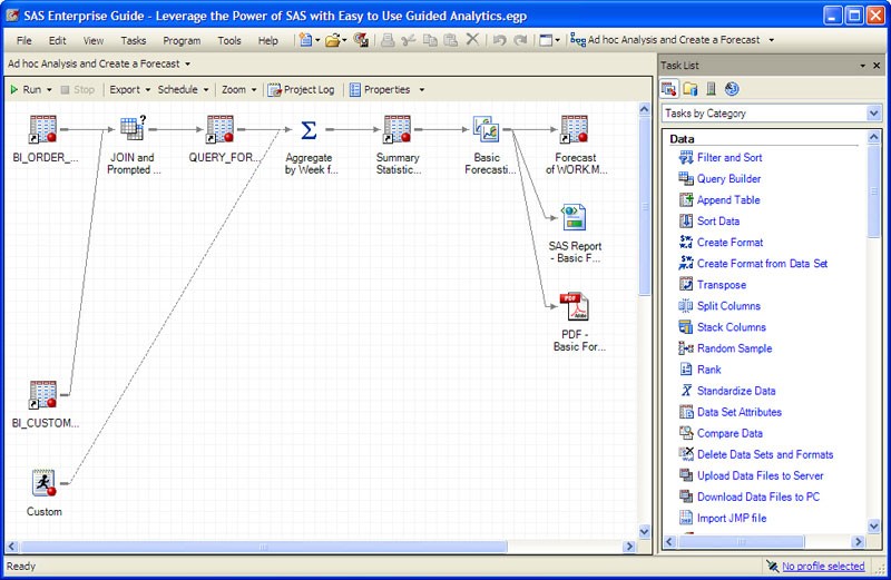 One of the main differences between SAS and other analytical visualisation tools is its advanced analysis capabilities (predictive techniques, time series, associations, etc.) based on SAS's long experience in tools of this type such as SAS/Enterprise Miner. The algorithms to be applied in predictive analysis are automatically detected, and detailed information on the selected algorithm can be obtained. It is possible to easily create decision trees to make groups or classifications in the data, as well as box-plot diagrams to know in depth the distribution of the data.
