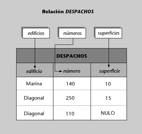 a) DESPACHOS(edificio, número, superficie), que tiene como única clave candidata la siguiente: edificio, número.