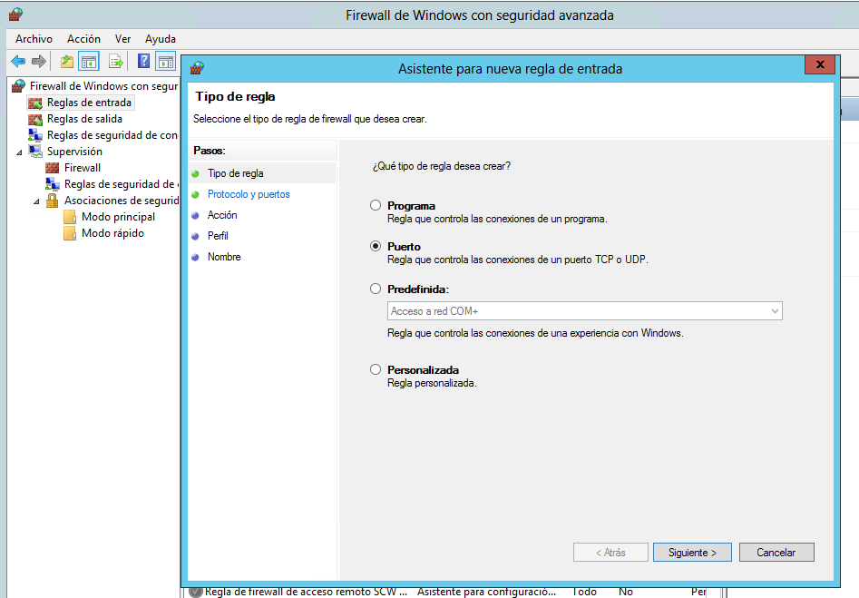 Abrir el puerto TCP desde el Firewall de Windows Server