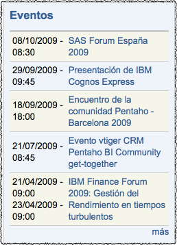 Hemos creado un nuevo bloque que muestra los últimos eventos que se han publicado, ordenados descendentemente por la fecha en que se realizará el evento evento. Así siempre tendremos en cuenta lo que está por venir..