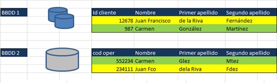 - Identificación de duplicados, no sólo por validación técnica de clave idéntica, sino de posibles duplicados entre registros que contienen campos con diferentes valores, pero que por error de grabación pueden ser el mismo.