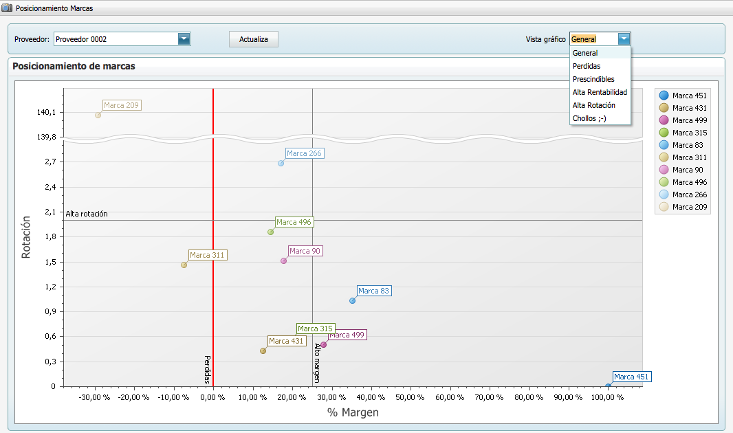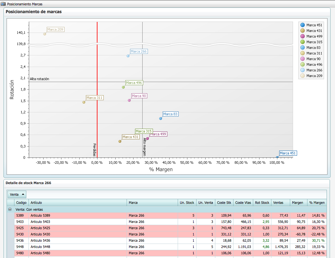 - Alta Rentabilidad: Marcas que tienen pocas ventas pero con mucho margen.