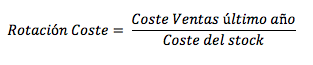 La rotación la hemos calculado como el número de vueltas que le damos al stock actual y con dos variantes, rotación del número de unidades y rotación del coste.