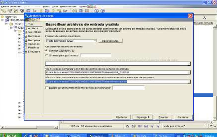 Figura 5.6: Especificación de los archivos de Entrada/Salida en el asistente de carga de datos.