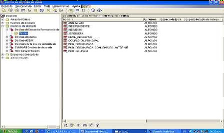 • Visualizar la tabla Asalariados en la lista de tablas de la base de datos PDESTINO. Luego pulsar con el botón derecho del ratón en la tabla y presionar Modificar.