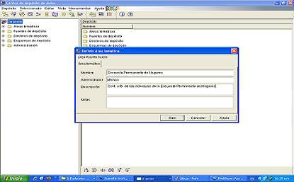 Pulsando en el botón Bien, se permitirá crear el área temática en el árbol del Centro de depósito de datos (ver fig. 5.24).