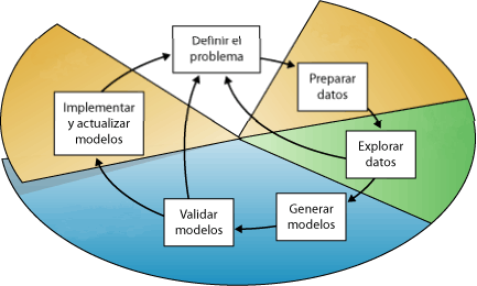 Aunque el proceso que se ilustra en el diagrama es circular, esto no significa que cada paso conduzca directamente al siguiente. La creación de un modelo de minería de datos es un proceso dinámico e iterativo. Una vez que se han explorado los datos, puede que se descubra que resultan insuficientes para crear los modelos de minería de datos adecuados y que, por tanto, se debe buscar más datos.