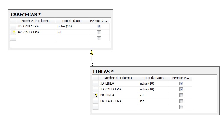 Cambiar en SQLServer 2008 la columna clave de una tabla a una nueva del tipo integer que sea identidad usando OVER il_masacratore 28 Octubre, 2013 - 13:37Puede ser que en algun momento pueda ser necesario cambiar el tipo de columna clave para nuestra tabla/s por un mal diseño o un cambio posterior x que nos obliga a ello. Si lo hacemos y la nueva tiene que ser una columna del tipo entero, quizás identity, podemos hacerlo con algun criterio para que quede ordenado (pk=indice clusterizado=order by en disco por ese campo). En este ejemplo para hacerlo más completo, lo hacemos en dos tablas Maestro-Detalle donde los campos claves son de tipo nchar (CABECERAS.ID_CABECERA y LINEAS.ID_LINEA). Pasos a seguir...
