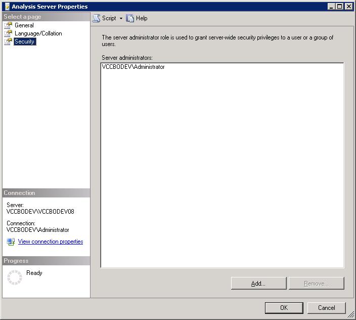 SSAS: Como quitarle al usuario administrador de sistema el acceso como administrador a nuestra instancia de analysis services il_masacratore 4 Octubre, 2010 - 11:23