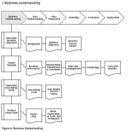El primer objetivo del analista de datos para un contexto es entender, desde una perspectiva de negocio, lo que el cliente realmente quiere lograr. A menudo el cliente tiene muchos objetivos que compiten y restricciones que deben ser correctamente equilibrados. El objetivo del analista debe mostrar (destapar) factores importantes, en el principio, esto puede influir en el resultado del proyecto. Una consecuencia posible de la negligencia de este paso es gastar un gran esfuerzo produciendo respuestas correctas a preguntas incorrectas o erradas.