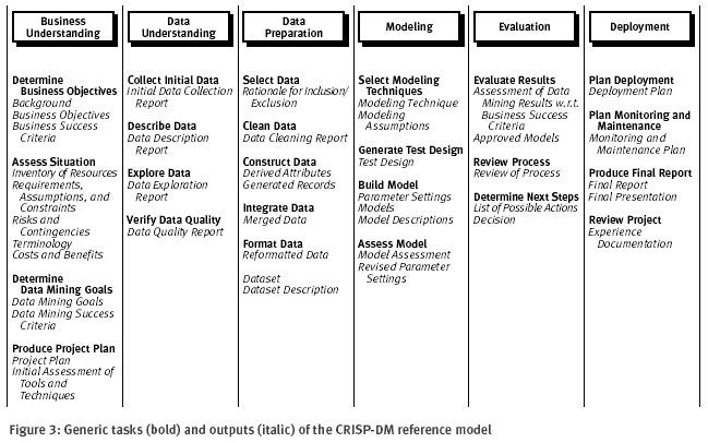 Figura 3: Tareas genéricas (negritas) y salidas (cursivas) del modelo de referencia CRISP-DM