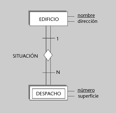 donde {nombre} referencia EDIFICIOObservad que la clave foránea {nombre} forma parte también de la clave primaria de DESPACHO. Si no fuese así, y la clave primaria contuviese sólo el atributo número, los despachos no quedarían totalmente identificados, teniendo en cuenta que puede haber despachos situados en edificios diferentes que tengan el mismo número.