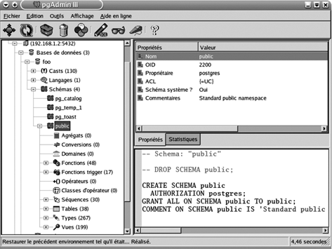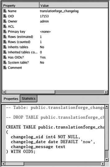 Una característica interesante de pgAdmin3 es que, cada vez que realizamos alguna modificación en un objeto, escribe la/s sentencia/s SQL correspondiente/s, lo que hace que, además de una herramienta muy útil, sea a la vez didáctica.