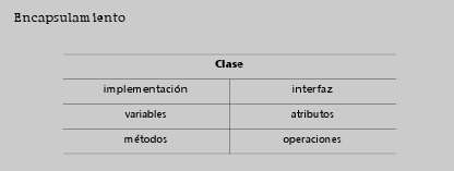 2.4. Encapsulamiento: implementacion frente a interfaz Dataprix 19 Octubre, 2009 - 11:22La estructura interna de los objetos debe estar oculta al usuario de un objeto, no necesita conocerla para interactuar con él. Los objetos se conciben como una cápsula cuyo interior está oculto y no puede ser alterado directamente desde el exterior.