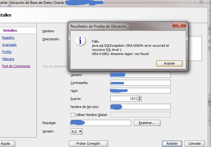 Al momento de comprobar la conexion en la ubicacion de la base de datos ORACLE  (CENTRO DE CONTROL)  me arroja el sigueinte error: