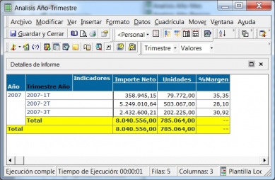 Movilidad en los componentes de un informe. Filas, columnas, indicadores.