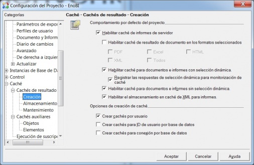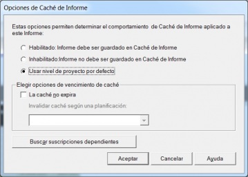 A nivel de informe, se pueden establecer opciones de cache personalizadas, que solo afectarán al informe en cuestion. Incluso se puede inhabilitar la cache para un informe en concreto y darle una caducidad.