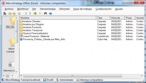 Microstrategy 9 incluye el componente Office que instala un complemento dentro la suite Microsoft Office. Este complemento nos permite interactuar directamente desde Word, Excel, Powerpoint, Access o incluso Outlook.El complemento se conecta a nuestro proyecto y nos muestra los diferentes informes a los que tenemos acceso.