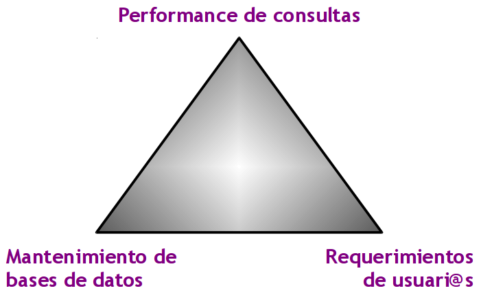 El siguiente gráfico muestra los tres puntos más importantes que se deben balancear al momento de diseñar y construir el modelo lógico de datos del DW: