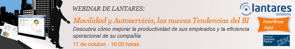 Lantares, IBM Premier Business Partner, le invita el próximo 23 de octubre a una sesión webinar que le mostrará cómo mejorar la productividad de sus empleados, incrementar la eficiencia operacional e impulsar la competitividad de su empresa gracias a las Soluciones de Movilidad y Autoservicio de Lantares, basadas en tecnología IBM Cognos Mobile e IBM Cognos Insight, respectivamente.