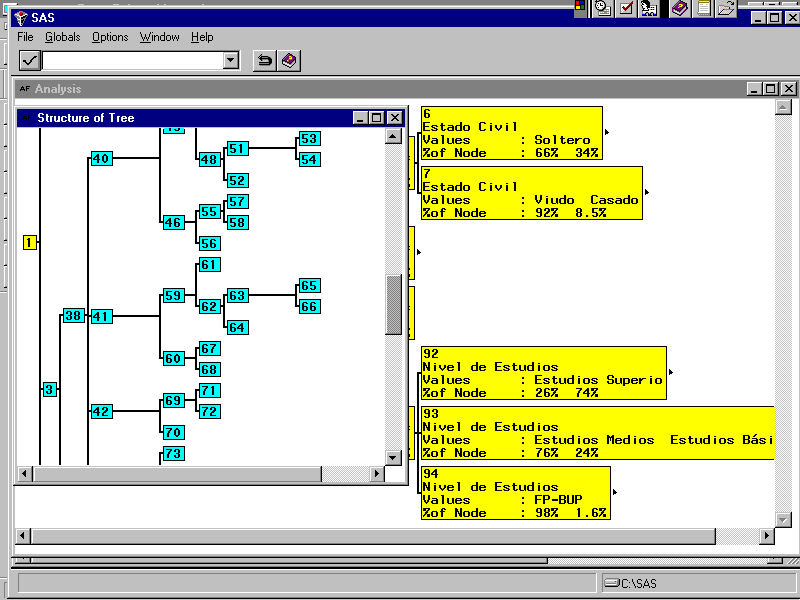 La raíz del árbol es el conjunto de datos íntegro, los subconjuntos y los subsubconjuntos conforman las ramas del árbol. Un conjunto en el que se hace una partición se llama nodo.