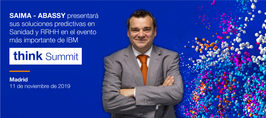 Por tercer año consecutivo, SAIMA – ABASSY participará en uno de los eventos que más expectativa generan dentro del sector tecnológico: think Summit. En esta ocasión, IBM tiene como objetivo dar a conocer las últimas soluciones de ciberseguridad, Cloud e inteligencia artificial, entre otros ámbitos de interés. Dentro de este entorno es dónde SAIMA – ABASSY presentará una solución con capacidades predictivas enfocada a los siguientes sectores: sanidad, recursos humanos, mutuas de accidentes y hospitales.