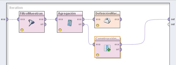 Este proceso muestra un preprocesamiento más complejo que demuestra algunas de las funcionalidades de ETL extendidas disponibles en RapidMiner mediante el uso de conceptos tales como bucles o macros.