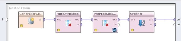 4. Hacer doble clic sobre el operador GenerarDatos (Subprocess). En el panel Nested Chain del nivel inferior, agregar los siguientes operadores: