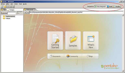Tras descargar el plugin y descomprimirlo en data-integration/plugins/spoon ya podemos volver a arrancar Kettle y tener todas las funcionalidades disponibles. De entre las cuales, destacan a primera vista, las 3 vistas posibles.